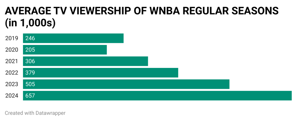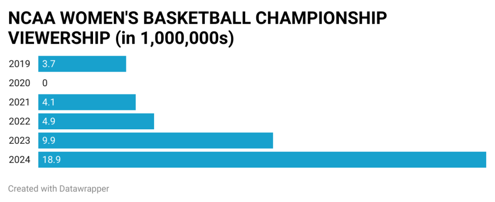 The interest in women’s basketball has seen a steady rise over the years—2020 serving as an outlier due to COVID-19.